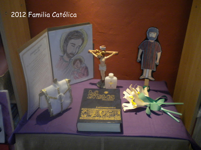 Decoramos nuestro altar para este día con el Folder Litúrgico de San José, el muñeco de Paper Dali y los lirios que habíamos hecho para el día de Santa María Goretti: