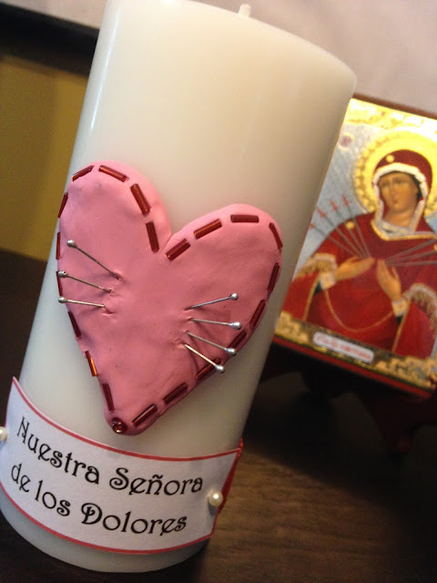 Nuestra Iglesia celebra los Dolores de Nuestra Madre Santísima el mes de septiembre. El año pasado hicimos esta vela para usarla durante este mes.