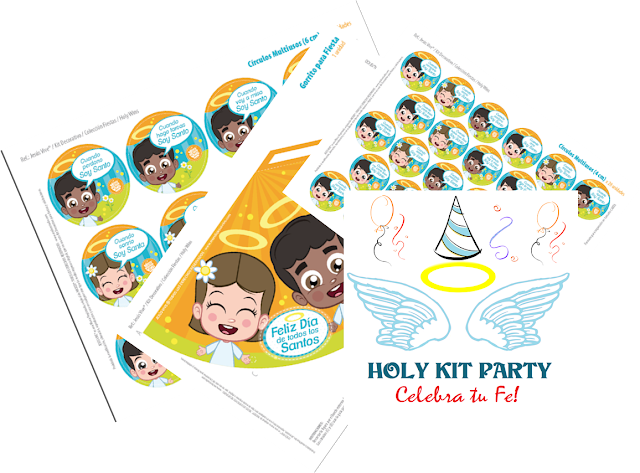 Como platiqué en nuestra celebración de Todos los Santos 2015, a través de una querida cantautora católica de Colombia, Luna Eikar, los creadores del sitio Jesús Vive me regalaron el descargable de un kit para decorar nuestra fiesta. Este kit es uno de los primeros esfuerzos que hacen para rescatar el espíritu católico de las celebraciones, en este caso, para la "Fiesta de Todos los Santos".