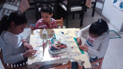 Después de imprimir las citas, los dibujos para colorear y las instrucciones, hice cuatro juegos de 6 dibujos para armarlos entre cuatro personas. Pero claro, entre más miembros de la familia participen, ¡mejor! Te recomiendo que los dibujos los imprimas en papel grueso, tipo cartulina, excepto el de la canasta del Bebé Moisés, porque la canasta se arma como origami. Yo no tuve la precaución de hacerlo y no lo podíamos armar.